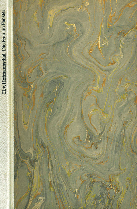 Hofmannsthal, Hugo von, Die Frau im Fenster. Ein Gedicht. Nachwort von Paul Lüking. Berlin 1966 (Auslieferung 1969). 4°. 49, VII, (3) S., handmarmor. OHalbpergamentbd. (Ecken minimal berieben). Sonst tadellos. * Eins von 150 Exemplaren, für die Mitglieder des „Berliner Bibliophilen Abend“ auf Zerkall-Bütten gedruckt. Typographie von Heinz Bartkowiak, gesetzt aus der Life der Offizina Simoncini, Bologna.