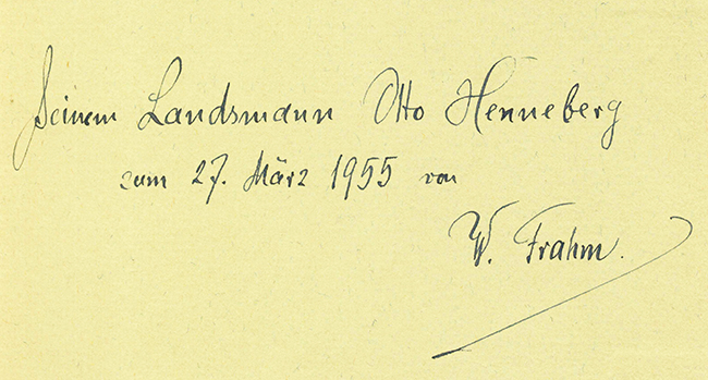 Frahm, Walter, Christina Frahm. Ein Frauenleben aus der Frachtfahrerzeit. Hamburg, Hermes 1948. 123 S. mit Abbildungen, illustr. OPp. (etw. verblasst). Insgesamt gutes Exemplar. EA. * Vorsatz mit dreizeil. handschr. Widmung des Verfassers.