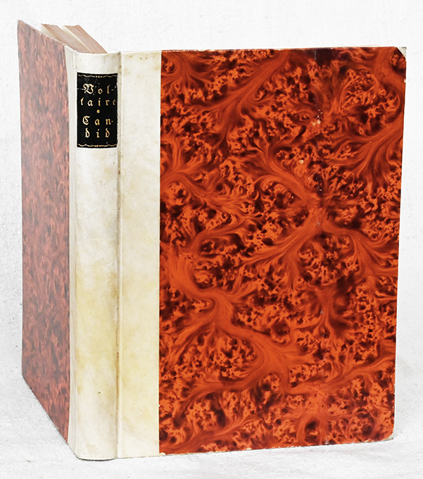 Unold – Voltaire, Candid oder Der Optimismus. Eine Erzählung. Mit 12 ganzseit. Orig.-Holzschnitten + 29 Initialen von Max Unold. Leipzig, Insel 1913. 177, (3) S., OHalbpergamentbd. mit goldgepr. Rückenschild u. Ganzfarbschnitt. Titelblatt mit Namenszug, sonst sehr gutes Exemplar. Sarkowski 1851. Ruck S. 351 + Tafelabb. 19 – 21. * Eins von 800 numer. Exemplaren.