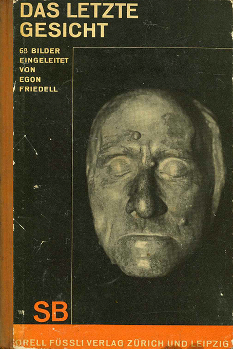 Friedell, Egon (Einleitung), Das letzte Gesicht. 76 [recte: 69] Bilder. Zürich-Leipzig, Orell Füssli 1929. 20 S. Text + 68 Tafeln, illustr. OHlwd. (berieben u. fleckig). Vorsatz mit Namenszug, das Textpapier nachgedunkelt u. (teils stärker) fleckig, die Tafeln davon weitgehend nicht betroffen. Insges. noch annehmbares Exemplar. EA. * Totenmasken von Künstlern, Musikern, Schriftstellern, Herrschern u.a.
