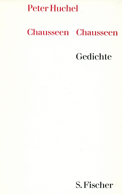 Huchel, Peter, Chausseen Chausseen. Gedichte. Frankfurt, S. Fischer (Cop. 1963). 4.-5. Tsd. 87 S., OLwd. mit (etw. unfrischem) OUmschl. Insgesamt gutes Exemplar.