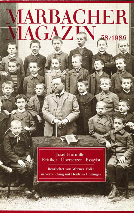 Hofmiller – Marbacher Magazin 38: Josef Hofmiller. Kritiker, Übersetzer, Essayist. Bearb. von W. Volke. Marbach 1986. 79 S. mit Abbildungen + Ausstellungsverzeichnis, OKt. mit illustr. OUmschl. Gutes Exemplar. EA.