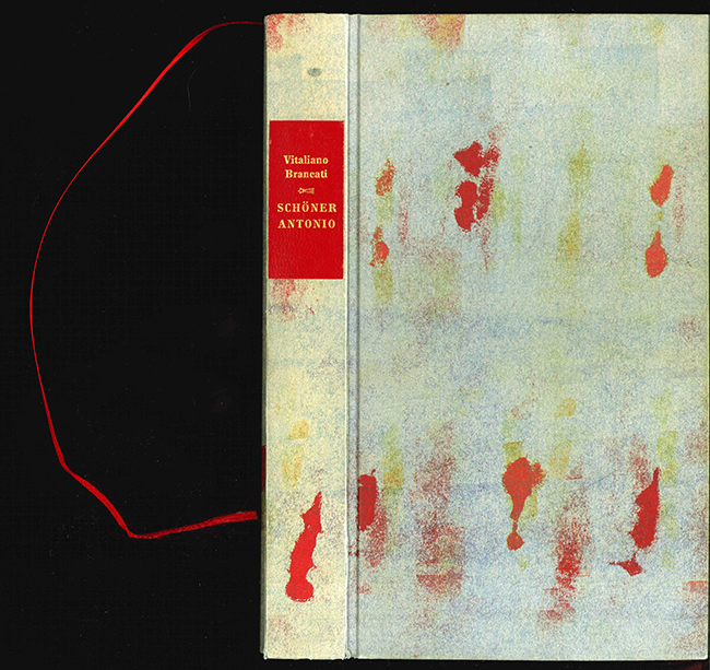 Brancati, Vitaliano, Schöner Antonio. Roman. Übertr. von Arianna Giachi. Mit Zeichnungen von Hans Hillmann. (= Die Andere Bibliothek, hrsg. von Hans Magnus Enzensberger, Bd. 7). Nördlingen, Greno 1985. 330, (6) S., farbig gemusterte Vorsätze u. OPappbd. (Kapitale minim. berieben). Gutes Exemplar. 1. Auflage. * Aus der Korpus Old Style gesetzt u. vom Blei auf Werkdruckpapier gedruckt.