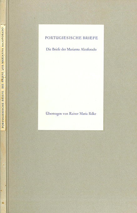 Rilke, Rainer Maria (Übertr.) – Alcoforado, Marianna, Portugiesische Briefe. Hamburg, Hauswedell 1979. 4°. 44, (4) S., OPp. in (etw. verblasstem) Schuber. Rücken nur minim. nachgedunkelt u. mit einigen kl. Fleckchen, sonst tadelloses Exemplar des eleganten Bandes. 1. Auflage. * Eins von 600 Exemplaren. – Die typographische Gestaltung übernahm Roswitha Quadflieg. Gesetzt aus der Lutetia-Kursiv, gedruckt auf Bütten-Werkdruck von Zerkall.