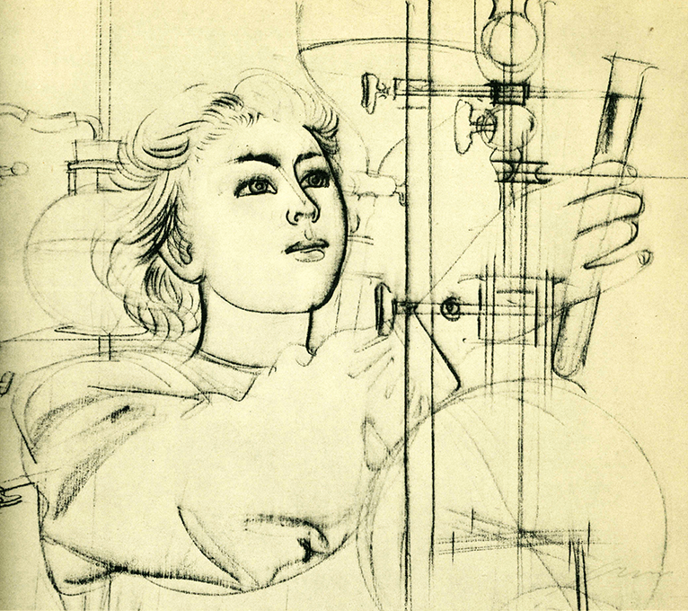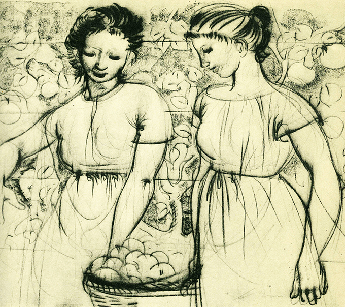 Erni – Bonnard, André, Verheißung des Menschen. Deutsch von Stephan Hermlin. Mit 30 Kohlezeichnungen von Hans Erni, in Lichtdruck wiedergegeben. Berlin, Volk und Welt 1957. 4°. (36 S.), OBrosch. (Blockbuchbindung) in (etw. beriebener) Halbleinenmappe mit zwei Schließen. Schönes Exemplar. DEA. Tiessen 16. EA WG² 34. * Eins von 2000 (ges. 2400) Exemplaren.