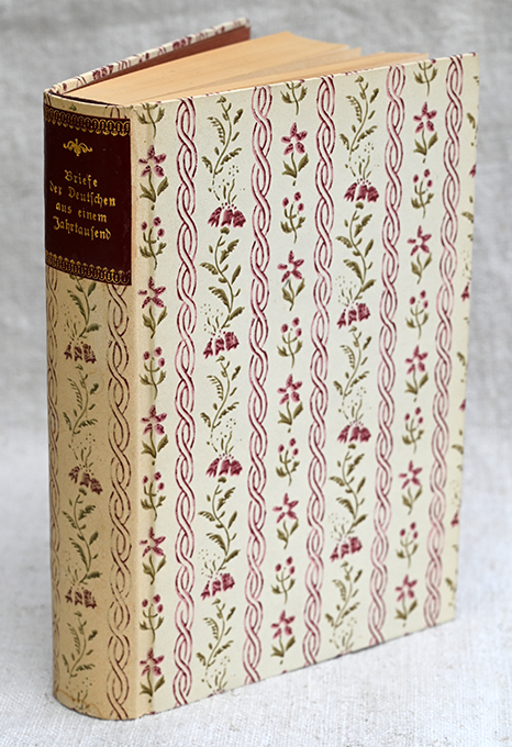 Seidel, Ina (Einführung), Briefe der Deutschen aus einem Jahrtausend. Leipzig, Reclam 1943. 518 S., neuer handgebund. Pappbd. mit zweifarb. Modeldruck-Überzugspapier u. goldgepr. Lederrsch. Rücken etw. nachgedunkelt, sonst sehr gutes Exemplar im hübschen, individuellen Handeinband. EA WG² 40.