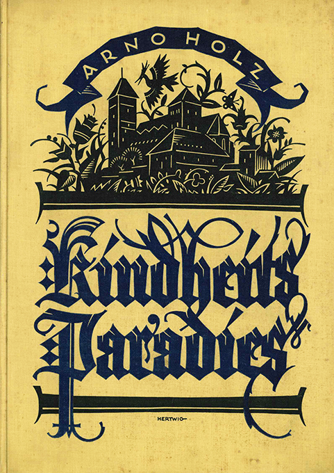 Holz, Arno, Kindheitsparadies. Mit einer (auf dem Einband wiederholten) Titelzeichnung von Max Hertwig. Berlin, Dietz 1924. 4°. 61, (5) S., illustr. OLwd. (etw. stockfl. u. angestaubt). Titelbl. mit Namenszug. Insgesamt gutes Exemplar in der besseren Einbandvariante (sonst Pappe). EA WG² 55.
