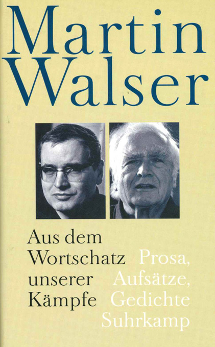 Walser, Martin, Aus dem Wortschatz unserer Kämpfe. Prosa, Aufsätze, Gedichte. Frankfurt, Suhrkamp 2002. (2. Aufl.) 434, (6) S., OLwd. mit ill. OUmschl. Tadelloses Exemplar. * Diese von Walser selbst zusammengestellte Sammlung enthält Aufsätze über Borchardt, Brecht, Büchner, Goethe, Heine, Schiller, R.A. Schröder u.v.a.