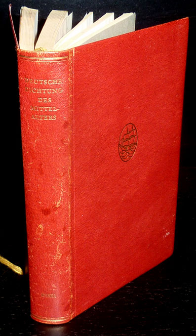 Mittelalter – Deutsche Dichtung des Mittelalters. Hrsg. von Friedrich v. der Leyen. Frankfurt, Insel 1962. Kl.-8°. 1071 S., OLdr. (Rücken etw. berieben u. mit einigen kleinen Fleckchen). Das letzte Bl. mit kleinem Eckabriß, sonst gut erhaltene Dünndruckausgabe. 1. Auflage. Sarkowski 370. * Eins von 2000 Exemplaren, hier im roten Ganzleder-Vorzugseinband mit Goldprägung.