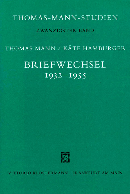 Mann, Thomas u. Käte Hamburger, Briefwechsel 1932 – 1955. Hrsg. mit Einführung, Anmerkungen u.a. von Hubert Brunträger. (= Thomas-Mann-Studien, hrsg. vom Thomas-Mann-Archiv, Bd. 20). Frankfurt, Klostermann 1999. Gr.-8°. 201, (3) S., OLwd. mit OUmschl. Innendeckel mit kleinem Exlibris. Sehr gutes Exemplar. Beiliegt eine Zeitungsrezension dieses Werkes. EA.