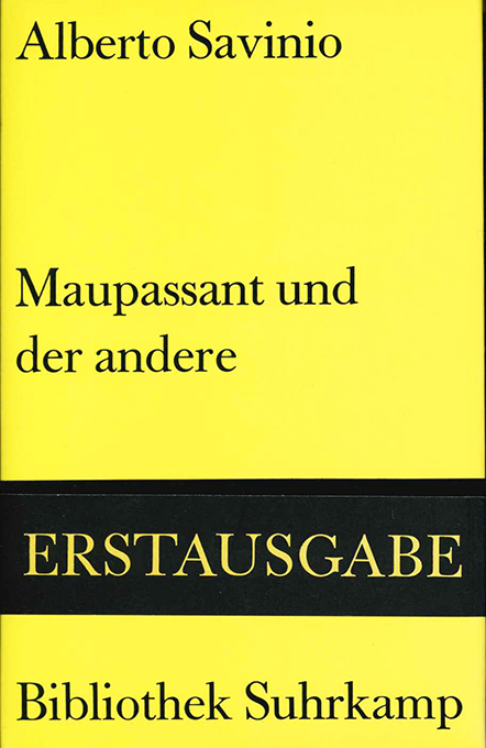 Savinio, Alberto, Maupassant und der „andere“. Übertr. von Anna Leube. (= Bibliothek Suhrkamp 944). Frankfurt, Suhrkamp 1988. Kl.-8°. 131, (13) S., OPp. mit OUmschl. Tadelloses Exemplar mit Bauchbinde. DEA. * „Dieser unorthodox-meisterhafte Essay zählt zum Besten, was der Maler und Schriftsteller Alberto Savinio – jüngerer Bruder von Giorgio de Chirico – geschrieben hat. ‚Maupassant und der andere‘ ist Biographie, Literaturkritik, Zeitgemälde und Autobiographie in einem.“ (Klappentext)