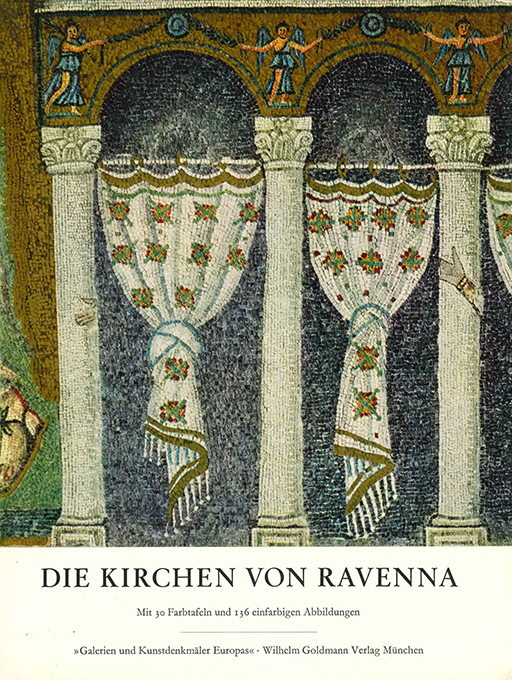 Ravenna – Bovini, Giuseppe, Die Kirchen von Ravenna. (= Galerien und Kunstdenkmäler Europas). München, Goldmann 1965. 4°. 164 S. mit 136 SW-Abbildungen u. 30 Farbtafeln, OLwd. mit farb. illustr. OUmschl. (dieser am Rücken kaum sichtbar nachgedunkelt). Sonst sehr gutes Exemplar. DEA. * Ausführlich über neun Kapellen, Kirchen, Basiliken, das Mausoleum der Glla Placidia u.a.