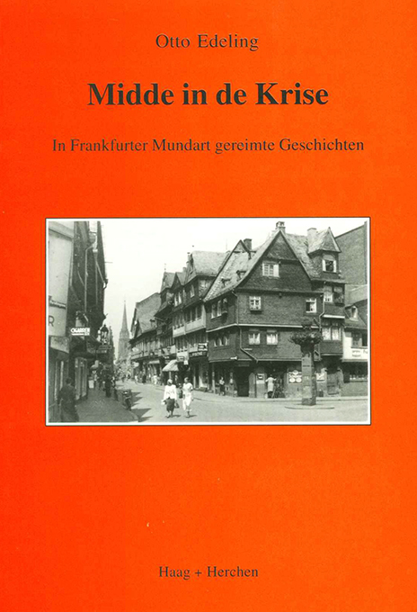 Mundart, Frankfurter – Edeling, Otto, Midde in de Krise. In Frankfurter Mundart gereimte Geschichten. Frankfurt, Haag + Herchen 2000. 191 S., illustr. OKt. Tadelloses Exemplar. EA.