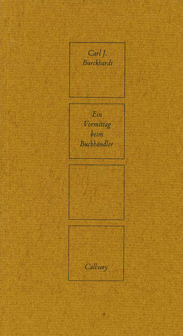 Burckhardt, Carl J., Ein Vormittag beim Buchhändler. München, Callwey 1986. Kl.-8°. 47 S., honigfarbener OPp. Sehr gutes Exemplar.