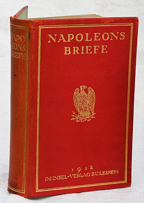 Napoleon Bonaparte – Napoleons Briefe. Ausgewählt, hrsg., eingeleitet u. erläutert von Friedrich Schulze. Übertr. von Hedwig Lachmann. Leipzig, Insel 1912. (8), 404, (4) S. mit 2 Kartenskizzen + 19 (davon 6 gefalt.) Tafeln, OLdr. mit Goldpr., Deckelvignette u. Kopfgoldschnitt (Rücken verblasst u. etw. fleckig, Kanten berieben, Gelenke u. Kapitale mit – teils geklebten – Läsuren, Vorsätze in den Falzen eingerissen). Innen gut erhalten. Seltene Vorzugsausgabe in rotem Ganzleder. DEA. Sarkowski 1183.