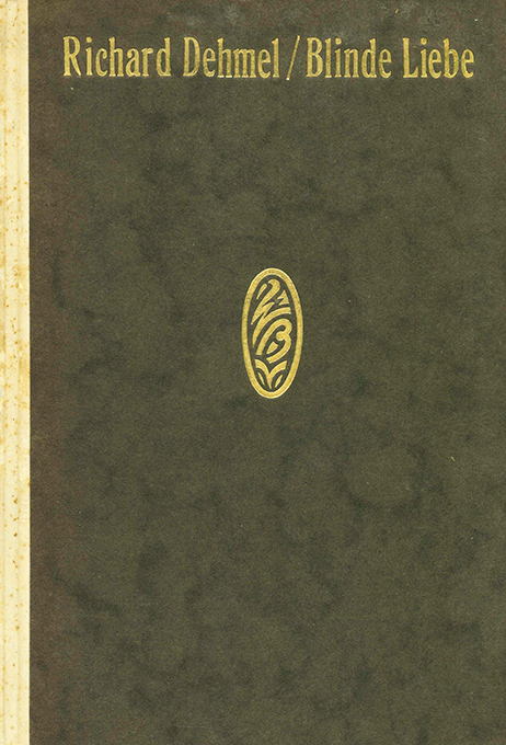 Dehmel, Richard, Blinde Liebe. Eine Geschichte aus den höchsten Kreisen. Berlin, Borngräber (ca. 1918). 2. Aufl. 58, (2) S. mit 5 mont. Illustrationen von O.H.W. Habdank, OHalbpergamentbd. mit Goldpr. (Ränderteils verblasst, Rücken gebräunt). Innendeckel mit hübschem Exlibris, sonst gut erhalten. * Sehr freie Übersetzung nach dem Englischen des Laurence Housman, was in dieser Ausgabe – im Gegensatz zur EA – nicht erwähnt wird, vermutlich weil es als eigenständiges Werk Dehmels gelten darf.