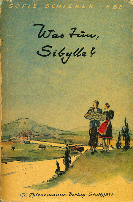 Schieker-Ebe, Sofie, Was tun Sibylle? Stuttgart, Thienemanns (ca. 1950). 58.-62. Tsd. 118, (2) S., illustr. OHlwd. mit farb. illustr. OUmschl. (dieser mit div. Läsuren, verso geklebt u. gebräunt). Einband u. Papier materialbedingt stellenw. nachgedunkelt. Insges. ordentliches Exemplar.