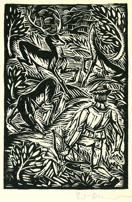 Klemm – Flaubert, Gustave, Die Sage von St. Julian dem Gastfreien. Übertr. von Bruno Maria Adler. Mit Titelholzschnitt u. 7 ganzseit. Orig.-Holzschnitten von Walther Klemm. Weimar, Biewald (1923). Gr.-8°. (70 S.), OHalbpergamentbd. (die Buchdeckel stellenw. nachgedunkelt). Sonst tadellos. 1. Auflage. * Eins von 150 (ges. 165) handschr. nummer. Exemplaren. Alle acht Holzschnitte wurden von Walther Klemm signiert, was bei diesem Werk außergewöhnlich ist. – Schöner Pressendruck auf van Gelder-Bütten.