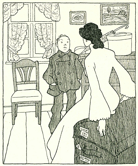Thoma, Ludwig, Tante Frieda. Neue Lausbubengeschichten. Mit Zeichnungen von Olaf Gulbransson. München, Langen 1907. 21.-30. Tsd. (im Jahr der EA). 16,5 x 20,5 cm. 152 S., illustr. OLwd. mit Ganzfarbschnitt (kaum sichtbar nachgedunkelt). Insges. erstaunlich gut erhalten.