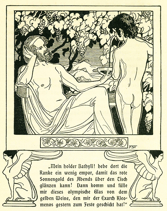 Stassen – Lechleitner, Franz, Bergsonnenschein. Zeichnungen von Franz Stassen. Berlin, Fischer & Franke (1902). (4), 271 S. mit 21 Illustrationen, farb. illustr. OLwd. mit Kopffarbschnitt. Papier vereinzelt leicht stockfl., nur die ersten Bl. stärker. Gutes Exemplar auf Maschinenbütten. Selten. EA.