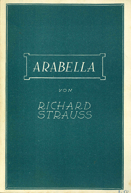 Hofmannsthal, Hugo von, Arabella. Lyrische Komödie in drei Aufzügen. Textbuch. Musik von Richard Strauss. London, Fürstner (um 1950). Kl.-8°. 95 S., OBrosch. (kl. Preis an der Unterkante). Gutes Exemplar.