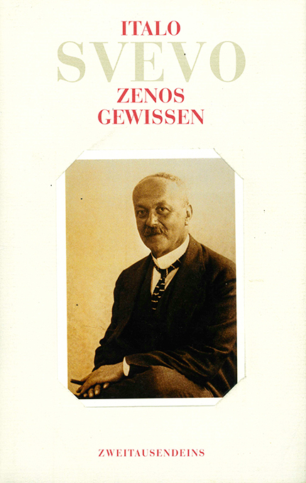 Svevo, Italo, Zenos Gewissen. Übertr. von Barbara Kleiner (Neuübersetzung). Mit einem Essay von Wilhelm Genazino. Frankfurt, Zweitausendeins 2001. 3. Aufl. 621, (3) S., OLwd. mit OUmschl., dieser mit eingestecktem farb. Portrait des Dichters. Kopfschnitt zart stockfl., sonst gutes Exemplar in der besseren Einbandvariante (sonst broschiert).