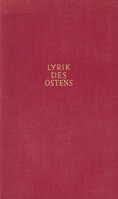Orient – Schimmel, Annemarie, Wilhelm Gundert u. Walther Schubring (Hg.), Lyrik des Ostens. München, Hanser 1952. 610, (2) S., OLwd. mit goldgepr. Titeln (Rücken verblasst). Sonst sehr gut erhaltene Dünndruckausgabe. 1. Auflage. * Gedichte aus Indien, China, Japan u. dem vorderen Orient.