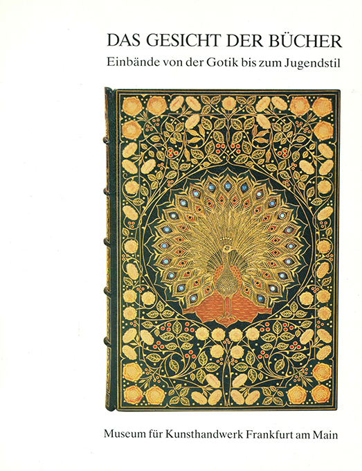 Einbände – Hanebutt-Benz, Eva-Maria, Das Gesicht der Bücher. Einbände aus eigenem Bestand von der Gotik bis zum Jugendstil. Modellsammlung Heinz Petersen. Frankfurt, Museum für Kunsthandwerk 1987. 20 x 24 cm. 80 S. mit zahlr. SW-Abbildungen u. 8 Farbtafeln, farb. illustr. OBrosch. Sehr gutes Exemplar. EA.