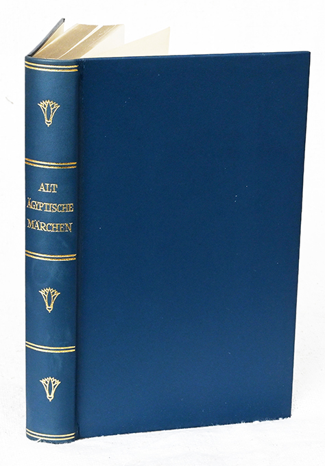 Ägypten – Brunner-Traut, E. (Übertr., Bearb.), Altägyptische Märchen. (= Die Märchen der Weltliteratur, hrsg. von Fr.v.d. Leyen). Düsseldorf u. Köln, Diederichs 1963. 306, (4) S. mit Illustrationen, OLdr. mit transp. Schutzumschlag u. (etw. nachgedunkeltem) Schuber. Tadelloses Exemplar. 1. Auflage. * Vorzugsausgabe in blauem Ganzleder, mit goldgepr. Rückentitel u. Kopfgoldschnitt.
