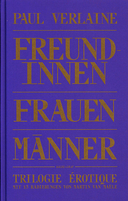 Verlaine, Paul, Trilogie Érotique. Übertr. von Curt Moreck. Mit 13 Radierungen von Martin van Maele. Berlin, Walde + Graf 2018. 110, (2) S., OPp. Tadellos. In kleiner Auflage gedruckt. 1. Auflage. * Freundinnen; Frauen; Männer. – Die 13 Radierungen des französischen Zeichners und Illustrators Martin van Maële schuf er für einen 1907 in Brüssel publizierten Privatdruck.