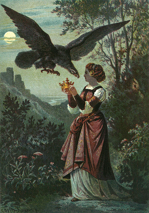 Hackländer, F.W., Märchen. Mit sechs Farbdruckbildern nach Aquarellen von E. Offterdinger. Dritte durchgesehene und vermehrte Auflage. Leipzig, Gebhardt (1880). (4), 223 S. + 6 Chromolitho-Tafeln, OHlwd. mit farbigem Gründerzeit-Dekor u. goldgepr. Rücken (nur minim. berieben u. bestoßen, Innendeckel mit Namenszug von alter Hand). Die Seidenhemdchen teils etw. stockfl., Papierränder nachgedunkelt. Insges. gutes bis sehr gutes Exemplar. Selten.