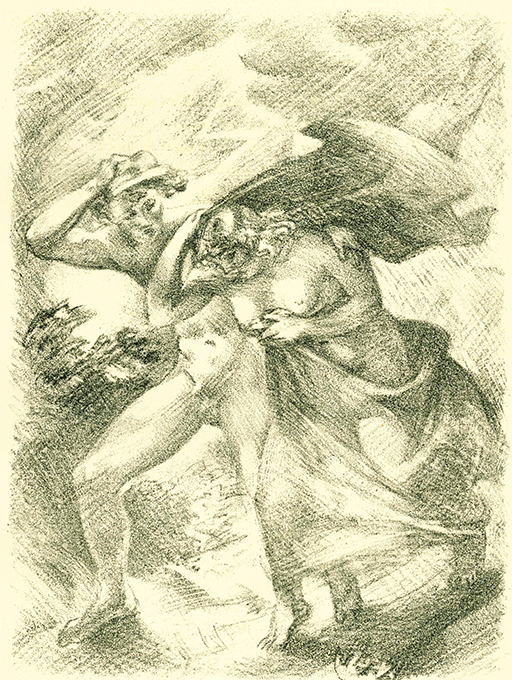 Hasler – Bethge, Hans, Die indische Harfe. Mit zweifarb. lithograph. Titelvignette u. 10 (davon 4 farb.) ganzseit. Orig.-Lithographien von Bernhard Hasler. Berlin, Morawe & Scheffelt 1913. Gr.-4°. 108, (6) S. + 10 Graphikbl., gemusterter Orig.-Seidenbd. mit Kopfgoldschnitt (der unbeschnittene Schnitt u. 4 Bl. kaum auffallend etwas stockfl.) Insgesamt, vor allem in Anbetracht der großen Empfindlichkeit des Seidenüberzugs, sehr schönes Exemplar im Schuber. EA. * Eins von 250 nummerierten Exemplaren, auf Van Gelder-Bütten mit Wasserzeichen gedruckt.