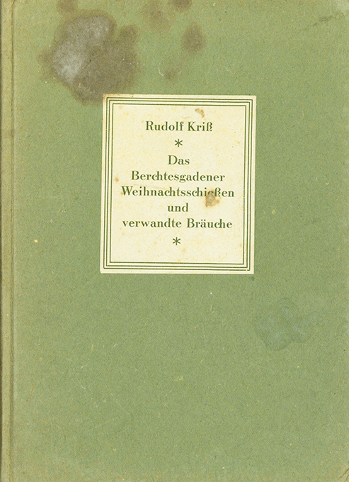 Weihnachtsschießen – Kriß, Rudolf, Das Berchtesgadener Weihnachtsschießen und verwandte Bräuche. Wien, Hölzel 1941. 72, (4) S. + 16 Tafeln, OPp. (dieser stellenw. verblasst u. mit starken Fleckenl). Vorsätze, Schnitt u. wenige Bl. stockfl. Insges. noch wohlerhalten. EA.