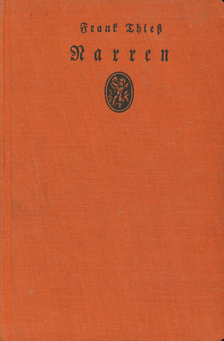 Thieß, Frank, Narren. Fünf Novellen. Stuttgart, Engelhorn 1926. Kl.-8°. 143 S., OLwd. (Schnitt minim. stockfl., Nachsatz mit Namenszug). Insgesamt gutes Exemplar. EA WG² 12.