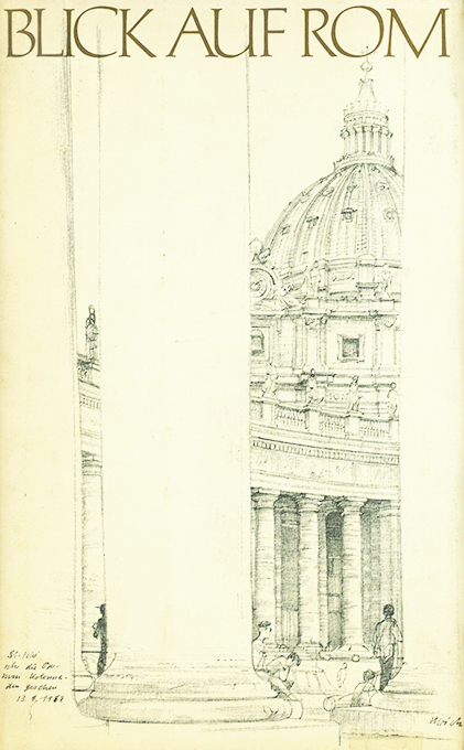 Ulrich – Wolken, K.A. (Hg.), Blick auf Rom. Neue Variationen über ein altes Thema. Mit ganzseit. Zeichnungen von Gerhard Ulrich. Gütersloh, Bertelsmann (1968). 254, (2) S., OPp. Gutes Exemplar mit (etw. unfrischem) illustr. OUmschl. EA. * Texte von Alverdes, Andersch, Ausländer, Bachmann, Britting, Hagelstange, Kaschnitz, Koeppen, Th. Mann, Meckel, Reinig, Rinser, E. Roth, Rühmkorf, Vring, Wohmann u.a.