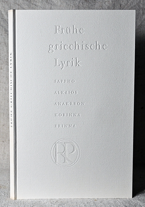 | Rohse – Frühe griechische Lyrik. Sappho, Alkaios, Anakreon, Korinna, Erinna. Übersetzt von Zoltan Franyó, durchgesehen von Peter Gan. Hrsg. u. Nachwort von Bruno Snell. Mit sechs Orig.-Holzschnitten von Otto Rohse u. zahlr. Initialen von Werner Bunz. Hamburg 1984. 4°. 62, (6) S., blindgepr. OPappbd. mit rotem Kopffarbschnitt, Zellophanumschlag u. Schuber. Makelloses Exemplar. Tiessen 34. Spindler 44.23. * 18. Druck der Otto Rohse-Presse. Eins von 120 nummer. Exemplaren, im Druckvermerk signiert. Handeinband von Christian Zwang.