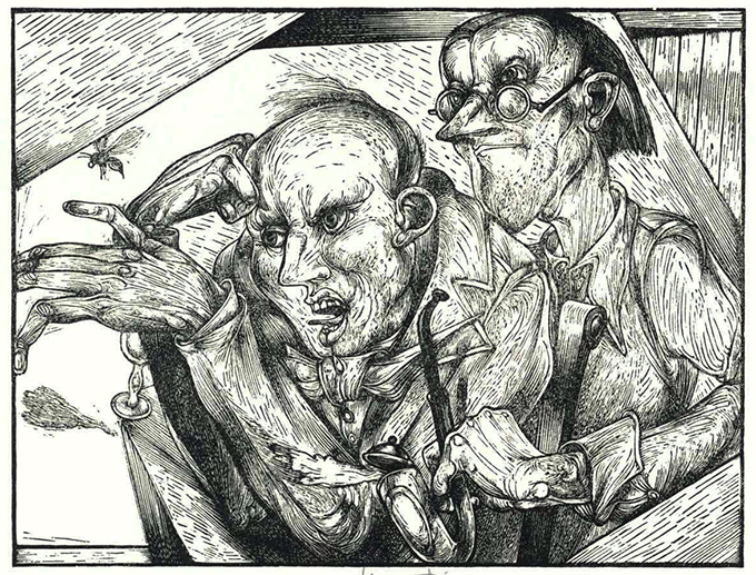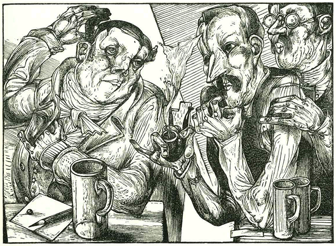 | Hirsch – Reuter, Fritz, Im Reformverein oder Woher die große Armut in der Welt stammt. Ein Kapitel aus ‚Ut mine Stromtid‘. Mit vier Orig.-Holzstichen von Karl-Georg Hirsch. Neu-Isenburg 1991. 20 x 30 cm. 25, (5) S., gemusterte OBrosch. mit mont. Deckelschild. Verlagsfrisches Exemplar. Kästner A.77.1. * 64. Druck der Edition Tiessen. Eins von 225 (ges. 300) nummer. Exemplaren der Normalausgabe. Druckvermerk von Hirsch signiert. – Handsatz aus der Original-Janson-Antiqua, gedruckt auf Lana Royal-Bütten.