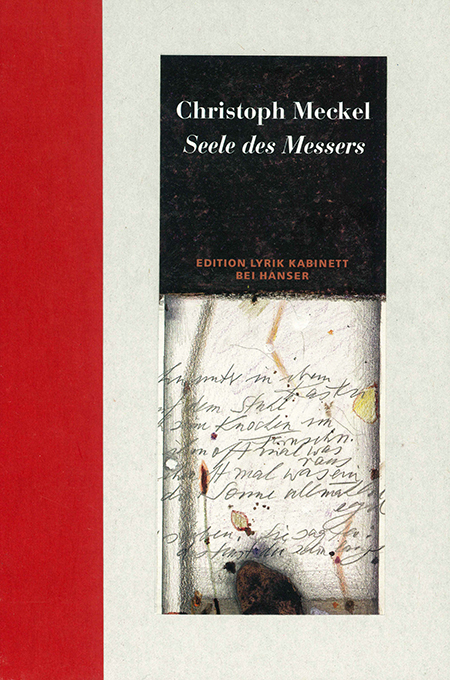 | Meckel, Christoph, Seele des Messers. Gedichte. (= Edition Lyrik Kabinett, hrsg. von Michael Krüger, Raoul Schrott u. Ursula Haeusgen, Bd. 2). München, Hanser 2006. 77, (3) S., farb. illustr. OPp. Tadelloses Exemplar. EA. * Eins von 150 nummer. Exemplaren der Vorzugsausgabe, im Druckvermerk von Meckel signiert.