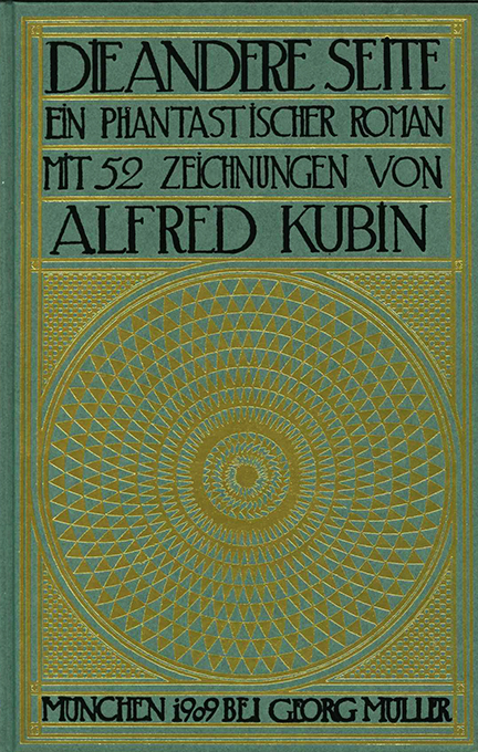 | Kubin, Alfred, Die andere Seite. Ein phantastischer Roman. mit 52 Abbildungen und einem Plan. Reprint der Erstausgabe von 1909. München, Edition Spangenberg 1990. (8), 338, (6) S., OPappbd. mit reicher Goldpr., Ganzfarbschnitt u. Pergamentpapier-Umschlag (dieser etw. nachgedunkelt u. mit einer kl. Randläsur). Sonst tadellos.