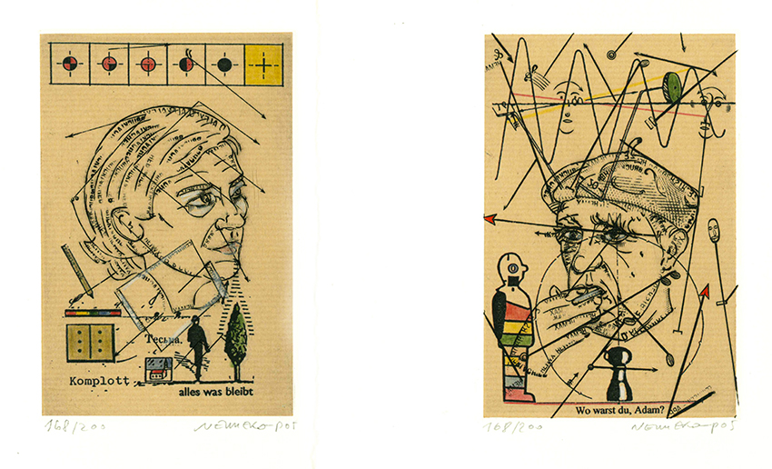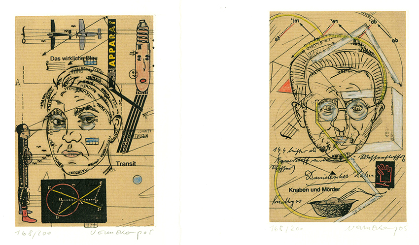 | Vennekamp – Die zweiten Zehn. Mit zehn farbigen Originalkaltnadelradierungen von Johannes Vennekamp und biographischen Angaben zu den Autoren und zum Künstler. (= Die Graphischen Bücher, Supplement III). Leipzig, Faber & Faber 2005. 4°. 11 S. Text, 10 Bl. Radierungen, lose in einer farbigen, von Juergen Seuss gestalteten OLeinenkassette. Verlagsfrisches Exemplar, noch im Orig.-Pergamentpapier. * Eins von 200 handschr. nummer. Exemplaren. Sämtliche Radierungen vom Künstler nummeriert, signiert u. datiert. Die Blätter (Blattgr. ca. 16 x 24,5 cm) wurden von Michael Schlemme auf Bütten gedruckt. Es handelt sich um Portraits der Autoren der Bände XI – XX der „Graphischen Bücher“: H. Ball, H. Böll, H.M. Enzensberger, L. Feuchtwanger, Erich Kästner, P. Rühmkorf, A. Seghers, B. Traven, H. Ungar u. Chr. Wolf.