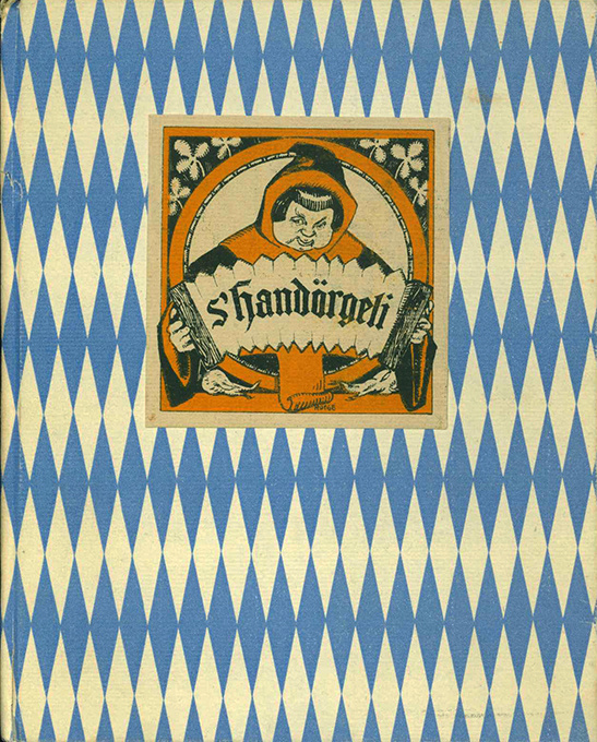| s’ Handörgeli. Ein blauweißer Almanach. Zürich, Verlag des Lesezirkels Hottingen 1911. 16 x 20 cm. 47 S. mit Illustrationen von Spyridon Sartoris, Wilfried Schweizer u. Burkhart Mangold + 12 Chromolitho-Tafeln, blauweiß rautierter OPappbd. mit mont. Deckelillustration (Rücken / Gelenke des sehr empfindlichen Einbands mit mehreren Läsuren). Sonst gutes u. innen sehr frisches Exemplar. EA. * Erschienen zum Münchnerfest des Lesezirkels Hottingen am 25. Februar 2011. Die Tafeln stellen Karikaturen dar wie den Kritiker, Theaterdirektor, Redakteur, Bildhauer, Dichter, Komponist, Richter u.a.