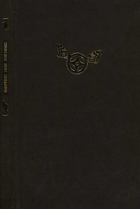 | Brevier der Technik. Konstruiert von Dichtern, Denkern und Wissenschaftlern aus Vergangenheit und Gegenwart. Montiert (hrsg.) von Rainer Crummenerl. Illustriert von Roland Beier. Radebeul, Polygraph / Druckmaschinenfabrik Planeta 1985. 88, (2) S. mit zahlr. einfarb. Vignetten u. ganzseit. farb. Illustrationen, OGanzlederbd. mit goldgepr. Deckelvignette u. Rückentitel. Sehr gutes Exemplar. EA. * Eins von 250 handschr. nummer. Exemplaren. Auf feingeripptes Bütten gedruckt.