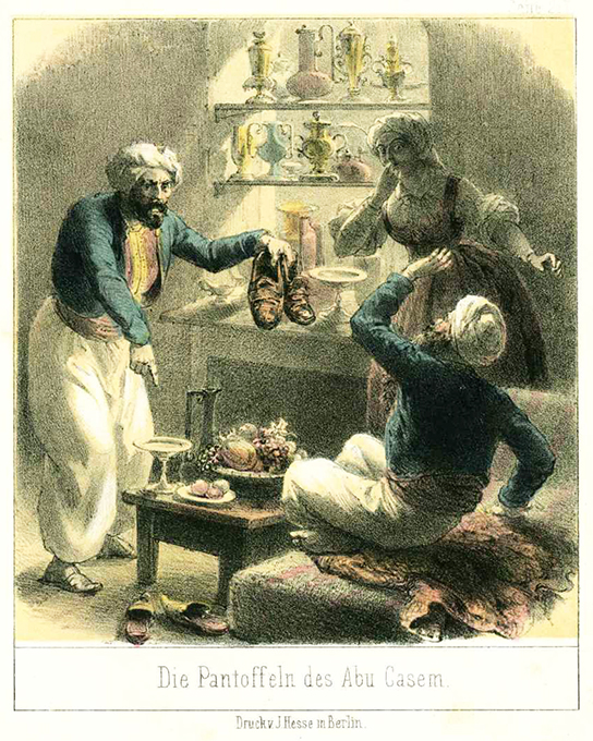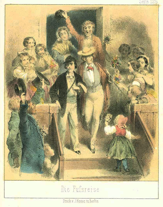 Aurelie (d.i. Sophie Gräfin von Baudissin), Theater für die Jugend. Zum Aufführen im Familien-Kreise. Mit vier colorirten Zeichnungen. Zweite durchaus vermehrte Auflage. Berlin, Springer (um 1855). Kl.-8°. IV, (2), 242 S. + 4 Tafeln, marmor. Pappbd. der Zeit mit handschr. Rückenschild (berieben u. bestoßen). Papier nur sehr vereinzelt ganz zart stockfl. Insges. schönes u. innen frisches Exemplar. Pataky I.26. Eymer (Pseudonymen-Lex.) S. 18. * Mit vier reizenden, handkolorierten Lithographien in biedermeierlichem Stil. – Gräfin von Baudissin (1817 – 1894) war hauptberuflich Pianistin u. Komponistin, schrieb unter versch. Pseudonymen Bücher für Kinder und Jugendliche. Diese erweiterte Auflage (die erste erschien 1849) enthält: Die kleine Haushälterin; Der Berggeist; Die Fußreise; Die Geburtstagsfeier; Selbstüberschätzung; Die Pantoffeln des Abu Casem.