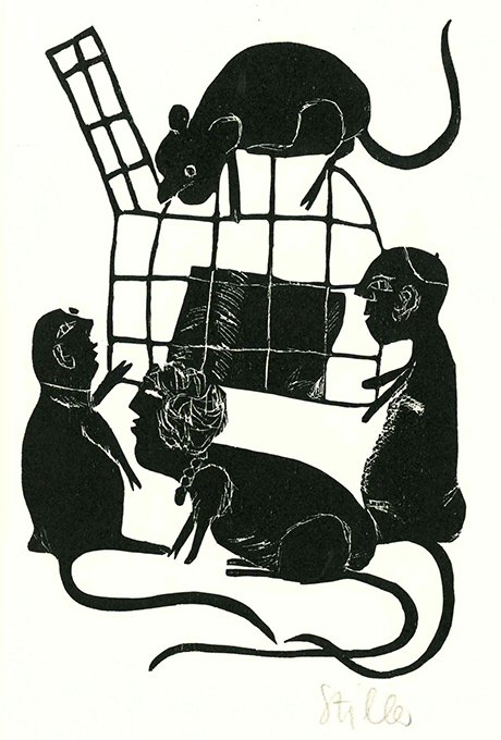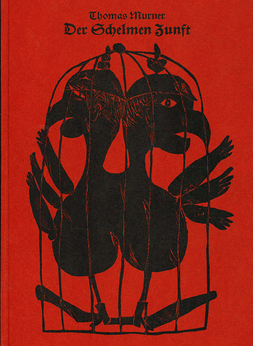 | Stiller – Murner, Thomas, Der Schelmen Zunft. Hrsg. (Textbearbeitung, Nachwort u. Anmerkungen) von Horst Gronemeyer. Mit 33 Orig.-Holzschnitten von Günther Stiller. Hamburg, Hauswedell 1968. 4°. (92 S.), illustr. OPp. (Rücken geringfügig verblasst, eine minim. Druckstelle). Innendeckel mit kl. Monogramm, sonst tadelloses Exemplar im Schuber. Tiessen 49. * Eins von 50 (ges. 600) Exemplaren der Vorzugsausgabe mit einer zusätzlich eingebunden Folge aller 33 Holzschnitte, von den Stöcken gedruckt u. sämtlich von Stiller signiert. Druckvermerk ebenfalls mit Signatur des Künstlers. – Satz des Textes nach Angaben Stillers aus der Alt-Schwabacher u. der Garamond-Antiqua.