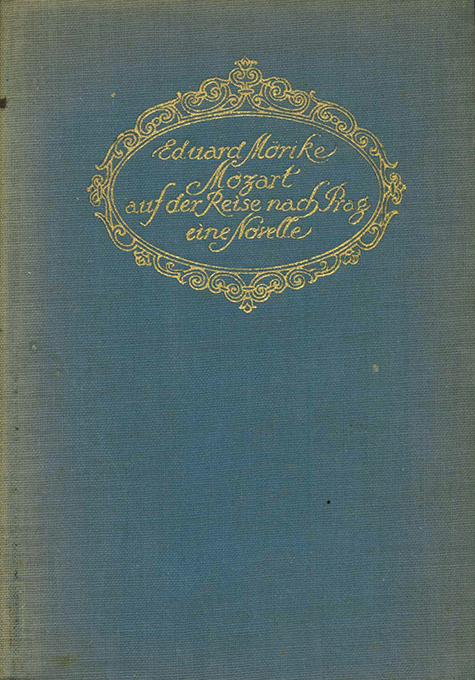 | Mörike, Eduard, Mozart auf der Reise nach Prag, eine Novelle. Doppeltitel, Schmuckinitiale u. Einbandgestaltung von Walter Tiemann. Leipzig, Insel 1911. 3.-4. Tsd. 2 Bl., 97, (3) S., OLwd. mit Goldpr. u. Kopfgoldschnitt (dieser wie meist stellenw. verblasst, einige winz. Fleckchen). Vorsatz mit kl. Exlibris, sonst gutes, unbeschnittenes Exemplar. Vgl. Sarkowski 1118.