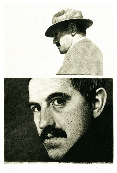 | Tripp – Die ersten Zehn. Mit zehn Originalkaltnadelradierungen von Jan Peter Tripp und einem Essay von Herbert Kästner zu den Graphischen Büchern. (= Die Graphischen Bücher, Supplement II). Leipzig, Faber & Faber 2001. 4°. 15 S. Text, 10 Bl. Radierungen, lose in farb. gestalteter OLeinenkassette. Tadelloses Exemplar. * Eins von 200 handschr. nummer. Exemplaren. Die Graphiken (Blattgr. 16 x 24,5 cm) wurden auf Bütten gedruckt u. sämtlich nummeriert u. vom Künstler signiert. – Es handelt sich um Portraits von Gottfried Benn, Bertolt Brecht, Marieluise Fleißer, Günter Grass, Christoph Hein, Georg Heym, Walser Jens, Franz Kafka, Ulrich Plenzdorf u. Johannes Wüsten.