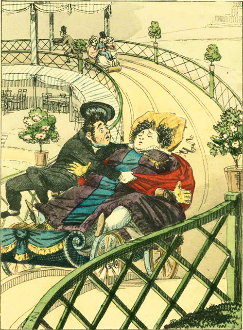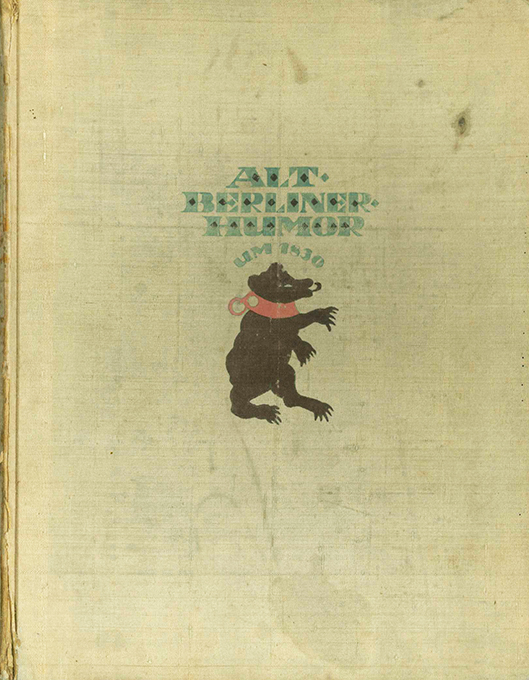 | Humor – Pniower, Otto (Hg., Erläuterungen), Alt-Berliner Humor um 1830. (Potsdam), Kiepenheuer (1919). 4°. 2 Bl., (18 S.), 70 Tafeln mit gegenüberliegenden Texten, 2 Bl., farb. illustr. OSeidenbd. (angestaubt u. fleckig, Rücken mit starken Läsuren, die Seide fast vollständig abgerieben). Vorsätze stockfl., Innenteil nur vereinzelt etw. stock- bzw. braunfleckig; die Bilder ansich sind davon nur minimal betroffen. EA. * Eins von 100 (ges. 500) handschr. nummer. Exemplaren der Vorzugsausgabe B, welche auf Bütten gedruckt u. in Rohseide gebunden wurde. Die 70 Graphiken wurden im Lichtdruckverfahren vervielfältigt u. liebevoll von Hand koloriert.