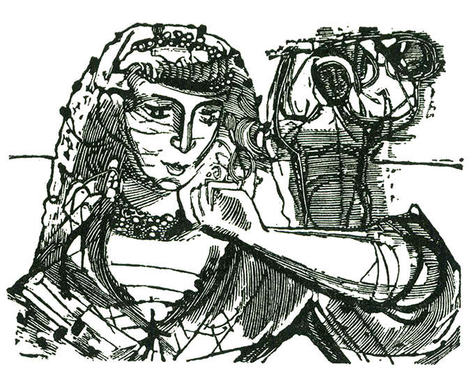| Reiner – Ali Baba und die vierzig Räuber. Übertr. von Enno Littmann. Mit 9 Orig.-Holzstichen von Imre Reiner. Frankfurt, Insel 1961. 89, (3) S., hübscher farbig illustr. OSeidenband mit goldgepr. Lederrückenschild. Rücken nur minim. verblasst u. mit wenigen winzigen Fleckchen, sonst tadelloses Exemplar im Schuber. Sarkowski 11. Tiessen 20. Schauer II.132 (mit Abb.) * Eins von 750 nummer. Exemplaren, im Druckvermerk von Reiner signiert. – Gesetzt aus der Walbaum-Antiqua. Handeinband von Willy Pingel.