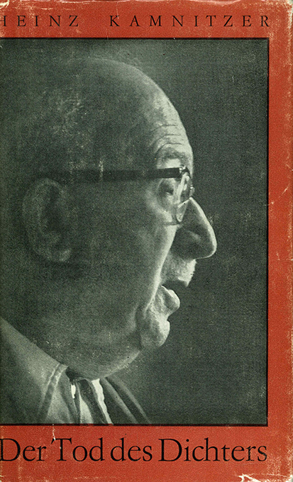 | Kamnitzer, Heinz, Der Tod des Dichters. Berlin, ‚Der Morgen‘ 1981. 2. Aufl. Kl.-8°. 144 S., OLwd. mit illustr. OUmschl. (dieser mit Läsuren u. hinterlegter kl. Fehlstelle). Insgesamt gutes Exemplar. * Vortitelbl. mit Stempel der „Buchkiste“ u. vierzeil. eigenhänd. Widmung des Autors.