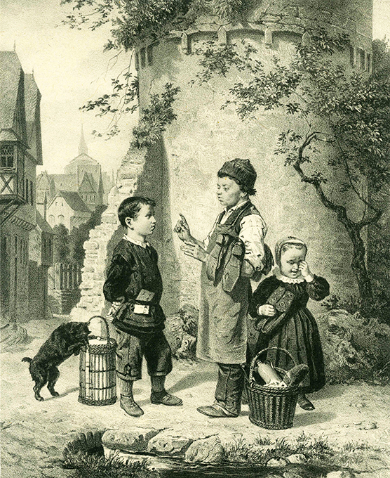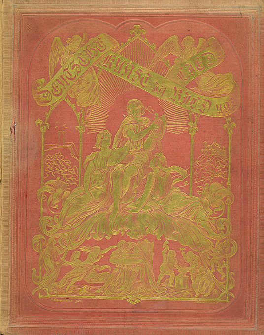 Traeger, Albert (Hg.), Deutsche Kunst in Bild und Lied. Original-Beiträge Deutscher Maler, Dichter und Tonkünstler. Zwölfter Jahrgang. Leipzig, Bach 1870. 4°. (2), 120, (4) S. Texte bzw. Noten, 22 (teils farbige, teils über Tonplatte gedruckte) Tafeln, blindgepr. OLwd. mit goldgepr. Deckelillustration u. Ganzgoldschnitt (stellenw. verblasst, Läsuren). Der Leim hat sich über gut 150 Jahre aufgelöst, so dass alle Seiten lose sind. Von diesen völlig üblichen Altersspuren abgesehen gutes Exemplar. EA. * Texte von Brachvogel, Dahn, Freiligrath, Hölty, Lingg, Oser u.a. Wiedergabe der farbigen Bilder in Chromolithographie.